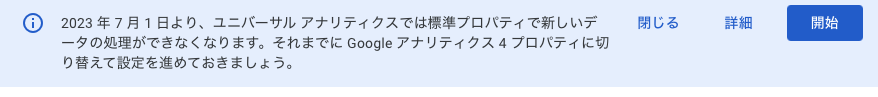 2023 年 7 月 1 日より、ユニバーサル アナリティクスでは標準プロパティで新しいデータの処理ができなくなります。それまでに Google アナリティクス 4 プロパティに切り替えて設定を進めておきましょう。