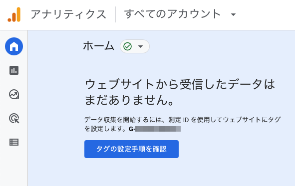Google Analyticsで追加したGA4プロパティのホーム画面に戻ると