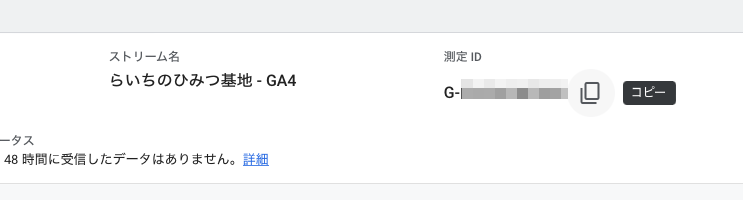 「G-*********」の測定IDをコピーしておきます。