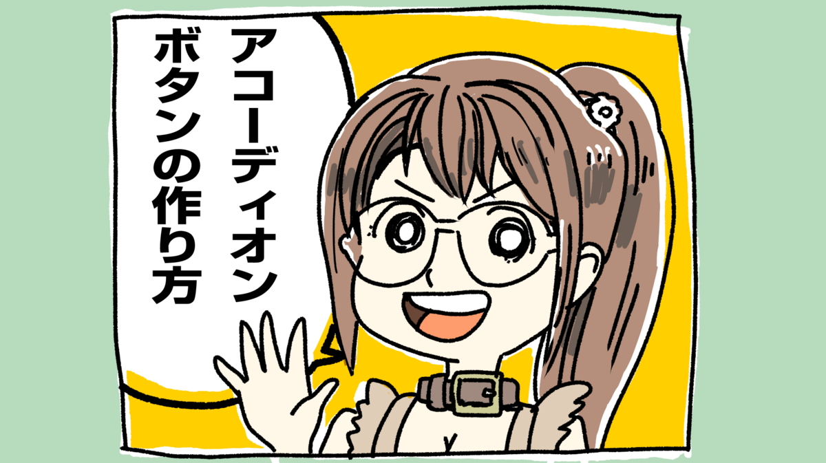 折りたたみアコーディオンボタン&テキストの作り方を紹介します。